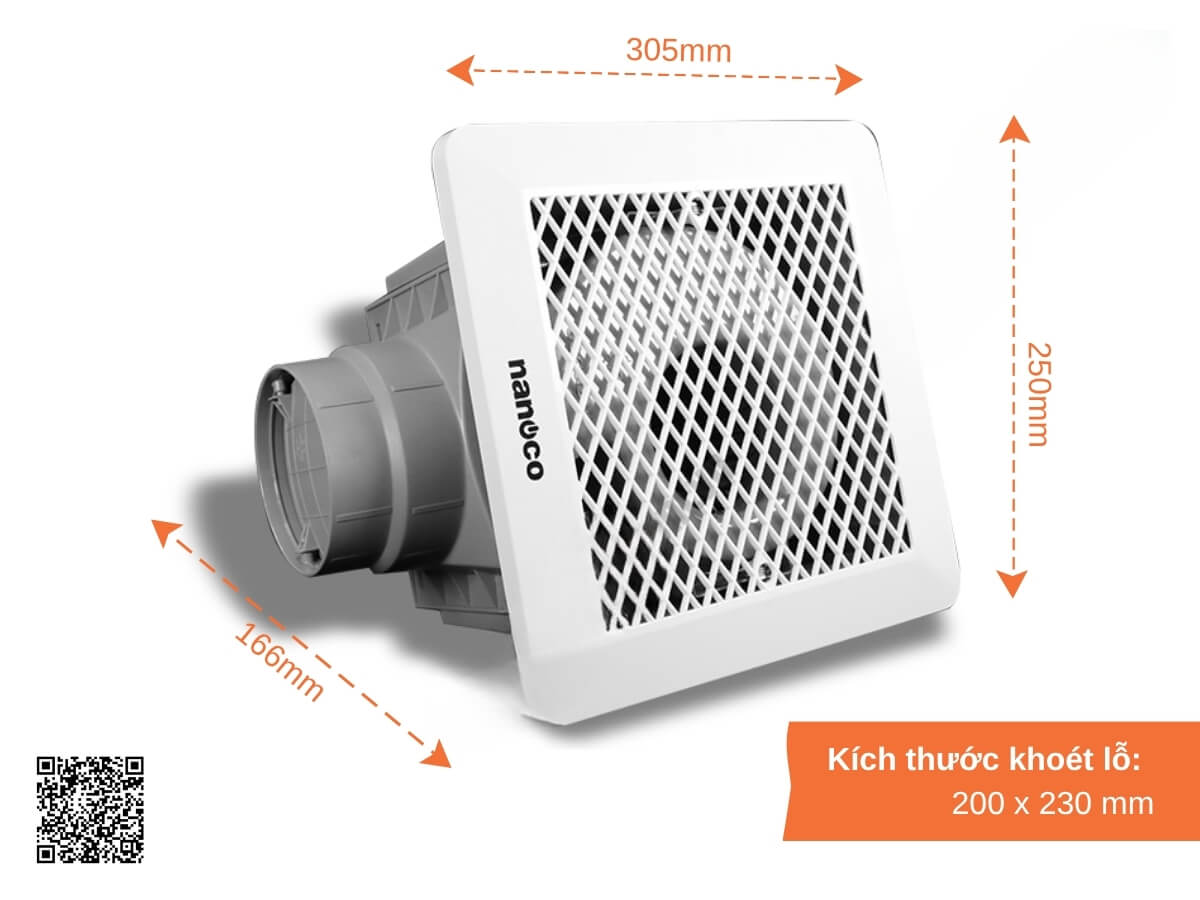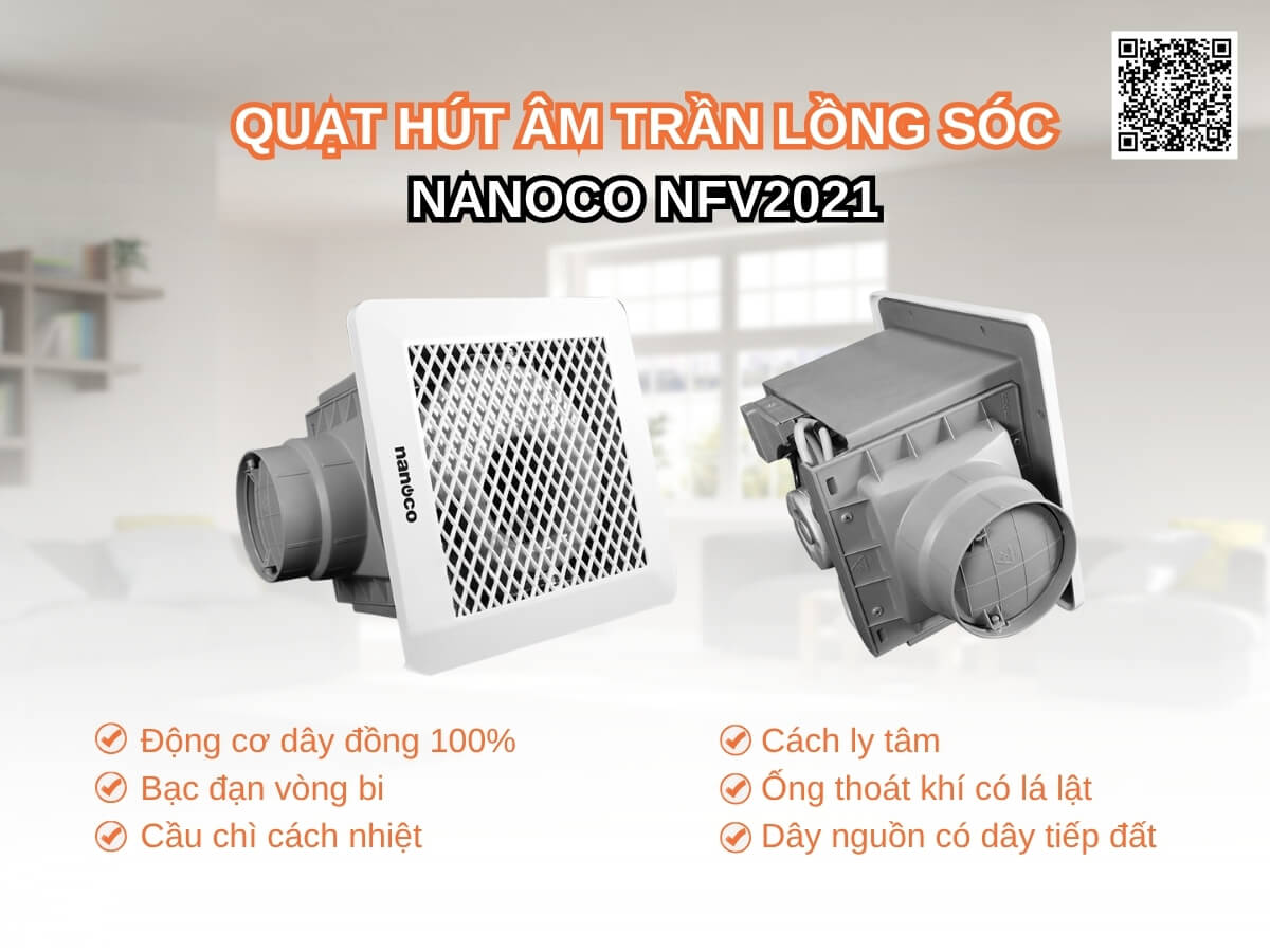 Quạt hút âm trần Nanoco NFV2021 với thiết kế âm trần hiện đại, tiết kiệm không gian