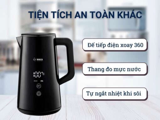 Ấm đun nước siêu tốc Arber AST1.5B  chất liệu cao cấp, an toàn