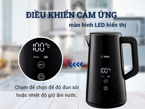 Ấm đun nước siêu tốc Arber AST1.5B  với dung tích 1,5 lít phù hợp sử dụng cho cá nhân, gia đình nhỏ. Ấm có hiển thị nhiệt độ ở phần thân ấm, điều khiển cảm ứng hiện đại, được làm bằng chất liệu inox cao cấp, an toàn, ngoài ra ấm còn có chế độ giữ ấm nước siêu tiện lợi.