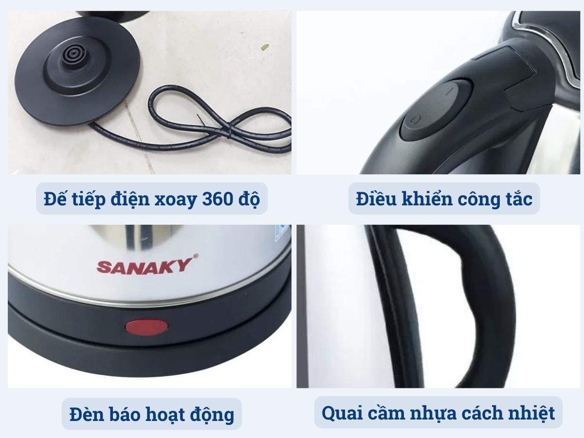 – Tính năng tự ngắt điện khi nước sôi hoặc cạn nước.