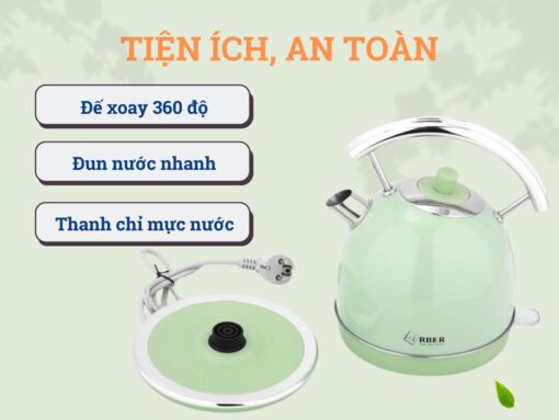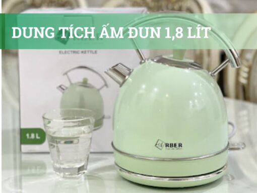 Ấm siêu tốc Arber AST1.8A Green được thiết kế mẫu mã nhỏ gọn, theo phong cách retro với tông màu xanh trang nhã, phù hợp cho nhiều không gian.