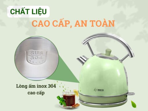 Arber AST1.8A Green có phần ruột ấm được làm từ inox 304 cao cấp, chống oxy hoá, chống gỉ sét, không sản sinh ra chất độc hại khi đun nấu ở nhiệt độ cao, đảm bảo an toàn cho sức khoẻ.