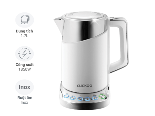 Ấm siêu tốc Cuckoo CK-A170T/WHVNCV thiết kế hiện đại, sang trọng, ruột ấm bằng inox cao cấp, chống gỉ, an toàn. Đặc biệt là có thể điều chỉnh nhiệt độ nước từ 40-100°C đáp ứng đa dạng nhu cầu. Công suất 1850W giúp đun sôi nước nhanh chóng, dung tích 1.7 lít phù hợp với nhiều gia đình.