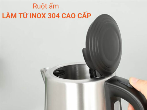 Vỏ ấm inox sáng bóng, chống gỉ sét, tăng thêm thẩm mỹ cho không gian sử dụng.