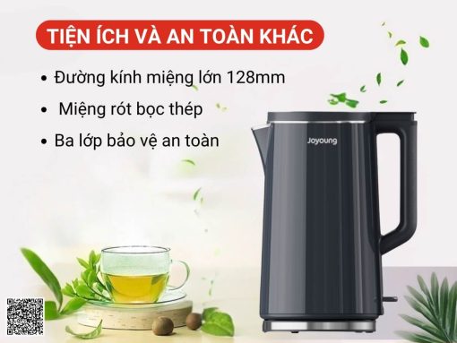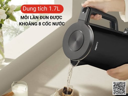 Ấm siêu tốc Joyoung JEK-588 (Xanh đen) dung tích 1.7L, đáp ứng đủ nhu cầu nước nóng cho cả gia đình. Một ấm đủ dùng cho cả ngày, không cần đun nấu nhiều lần, mỗi lần đun được khoảng 8 cốc nước.