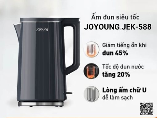 Ấm siêu tốc Joyoung JEK-588 thiết kế nút bấm mở nắp thông minh và đun nước tiện lợi chỉ với một nút bấm. Sản phẩm sử dụng bộ điều khiển nhiệt độ chất lượng Đức, bền bỉ vượt thời gian.