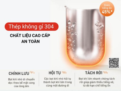 Ấm siêu tốc Joyoung JEK-588 được cấp chứng nhận “Vận hành êm ái” nhờ công nghệ độc quyền điều khiển chuẩn xác kích thước bọt khí. Quá trình chỉnh lưu, hội tụ và tách rời bọt khí giúp kiểm soát tiếng ồn hiệu quả, giảm ồn đến 45% so với ấm thông thường.
