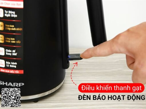 Ấm siêu tốc Sharp EKJ-10DVPS-BK thiết kế thanh gạt để điều khiển ấm, chỉ cần nhấn thanh gạt xuống dưới để bắt đầu đun nước. Cùng với đó là đèn phát sáng khi bình đang đun nước và tắt khi bình đã đun xong, giúp bạn dễ theo dõi quá trình đun nước.
