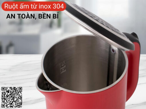 Vỏ ấm bằng nhựa PP bền chắc, cách nhiệt tốt, đảm bảo an toàn cho người dùng, tránh bị bỏng khi chạm vào vỏ ấm. Màu đỏ nổi bật, tạo điểm nhấn thẩm mỹ cho không gian bếp.