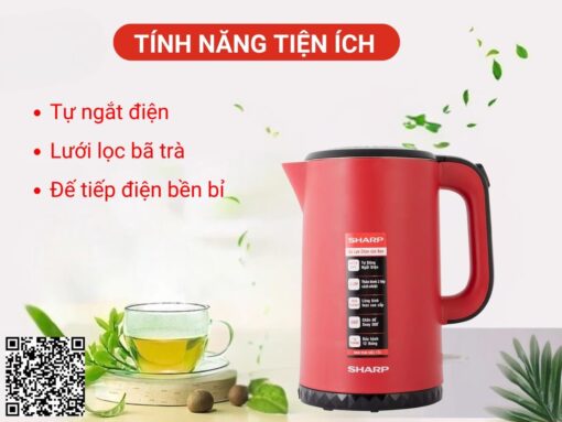 Ấm siêu tốc Sharp EKJ-17EVPS-RD công suất mạnh mẽ 2200W