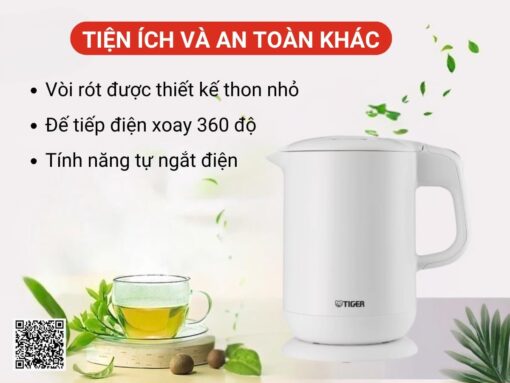 Ấm siêu tốc Tiger PCG-G10(W) công suất mạnh mẽ 1300W
