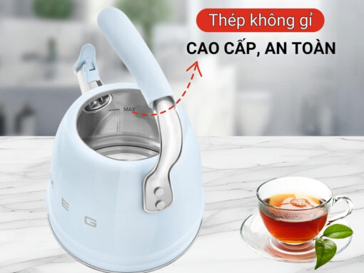 - Ấm có còi báo hiệu nước sôi cho người dùng, thuận tiện khi sử dụng.