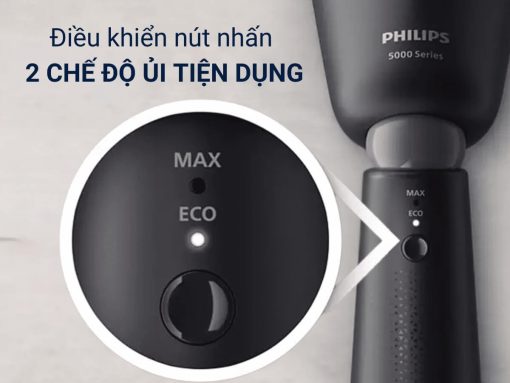 - Chế độ Max với tốc độ hơi nước mạnh hơn, phù hợp để ủi các nếp nhăn cứng đầu và các loại vải như cotton.