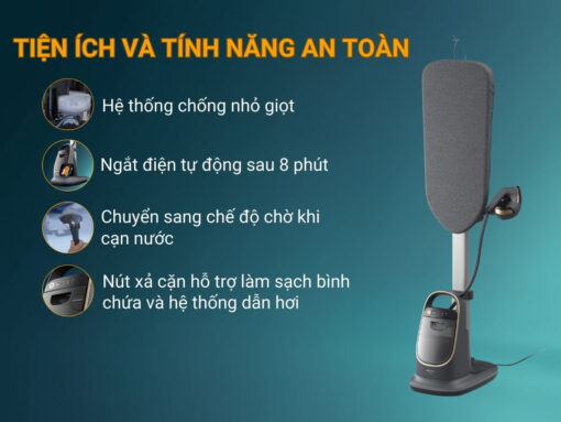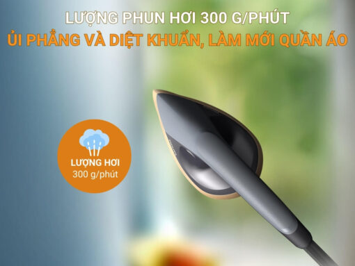 Lượng phun hơi 300 g/phút, ủi phẳng và diệt khuẩn, làm mới quần áo