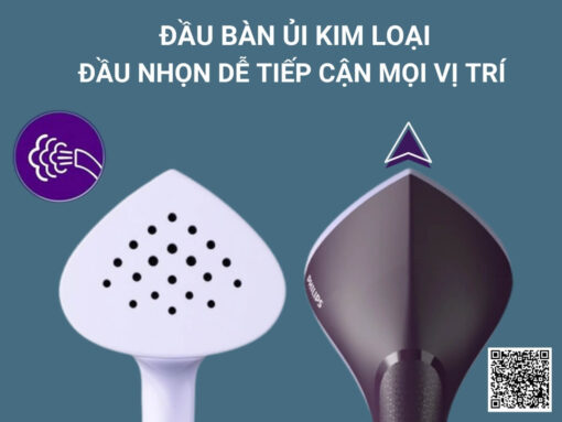 Đầu bàn ủi kim loại bền bỉ, đầu nhọn dễ tiếp cận mọi vị trí