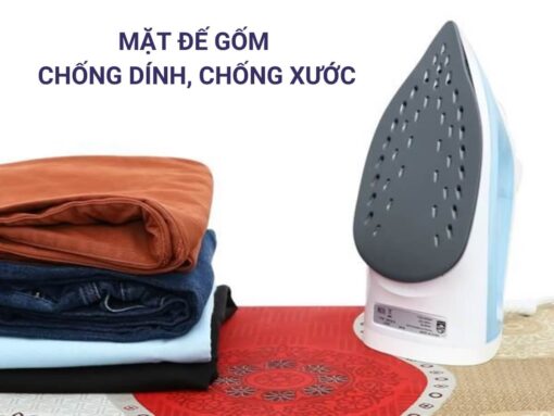 Mặt đế bàn ủi được phủ một lớp chống dính đặc biệt, chống ăn mòn, chống trầy xước tốt, lướt nhẹ và êm ái trên mọi chất liệu vải, bảo vệ quần áo tối ưu.