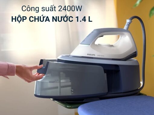 Đặc biệt, hộp chứa nước thiết kế rời với dung tích lớn 1.4 lít, cho phép bạn ủi được nhiều quần áo mà không cần thêm nước nhiều lần. Khi cần thêm nước, bạn chỉ cần tháo hộp chứa nước ra và
