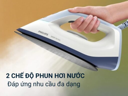 Bàn ủi hơi nước Philips PSG3000/20 cung cấp 2 chế độ phun hơi nước, cho phép bạn dễ dàng lựa chọn chế độ phù hợp để ủi quần áo hiệu quả hơn, loại bỏ các nếp nhăn gấp trên quần áo.