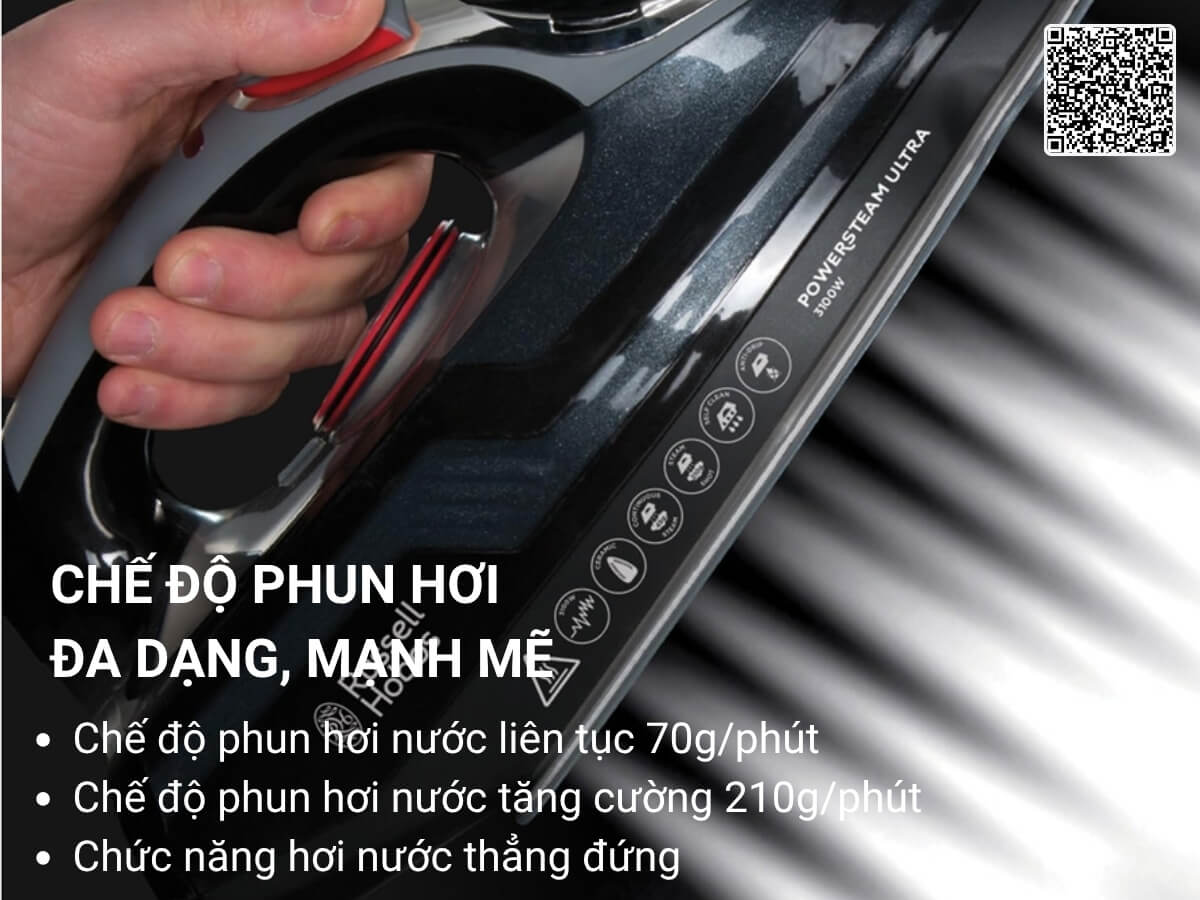Bàn ủi hơi nước Russell Hobbs Powersteam Ultra 20630-56 cung cấp các chế độ phun hơi linh hoạt, giúp bạn dễ dàng loại bỏ mọi nếp nhăn: