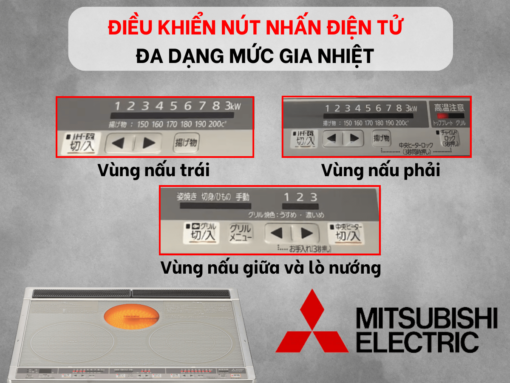 Bếp điện từ Mitsubishi CS-G318MS thiết kế bảng điều khiển dạng nút nhấn điện tử, kết hợp màn hình hiển thị LCD hỗ trợ người dùng quan sát và điều khiển bếp dễ dàng. Hệ thống điều khiển điện tử rất nhạy và êm, thao tác dễ dàng chỉ cần nhấn nhẹ vào nút chức năng tương ứng. Giao diện sử dụng tiếng Nhật nhưng bạn có thể yên tâm, khi mua hàng tại Bếp Hưng Phú, bạn sẽ được hướng dẫn chi tiết để dễ dàng điều khiển và sử dụng bếp.