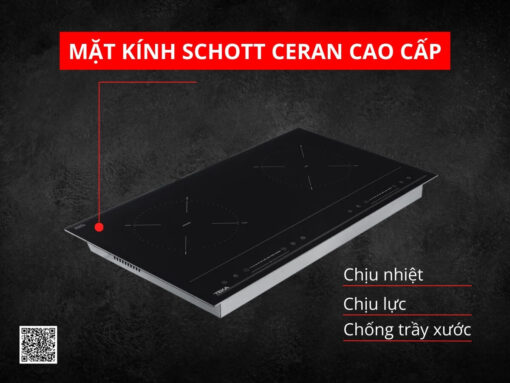 Mặt kính Schott Ceran cao cấp, chịu lực, chịu nhiệt tốt