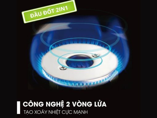 Công nghệ 2 vòng lửa tạo xoáy nhiệt cực mạnh, giúp làm chín thức ăn nhanh và đều
