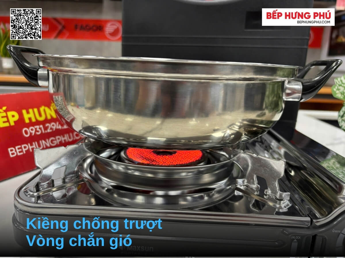 - Kiềng bếp chắc chắn bằng thép chịu lực, giữ nồi và chảo vững vàng, dễ tháo lắp và vệ sinh.