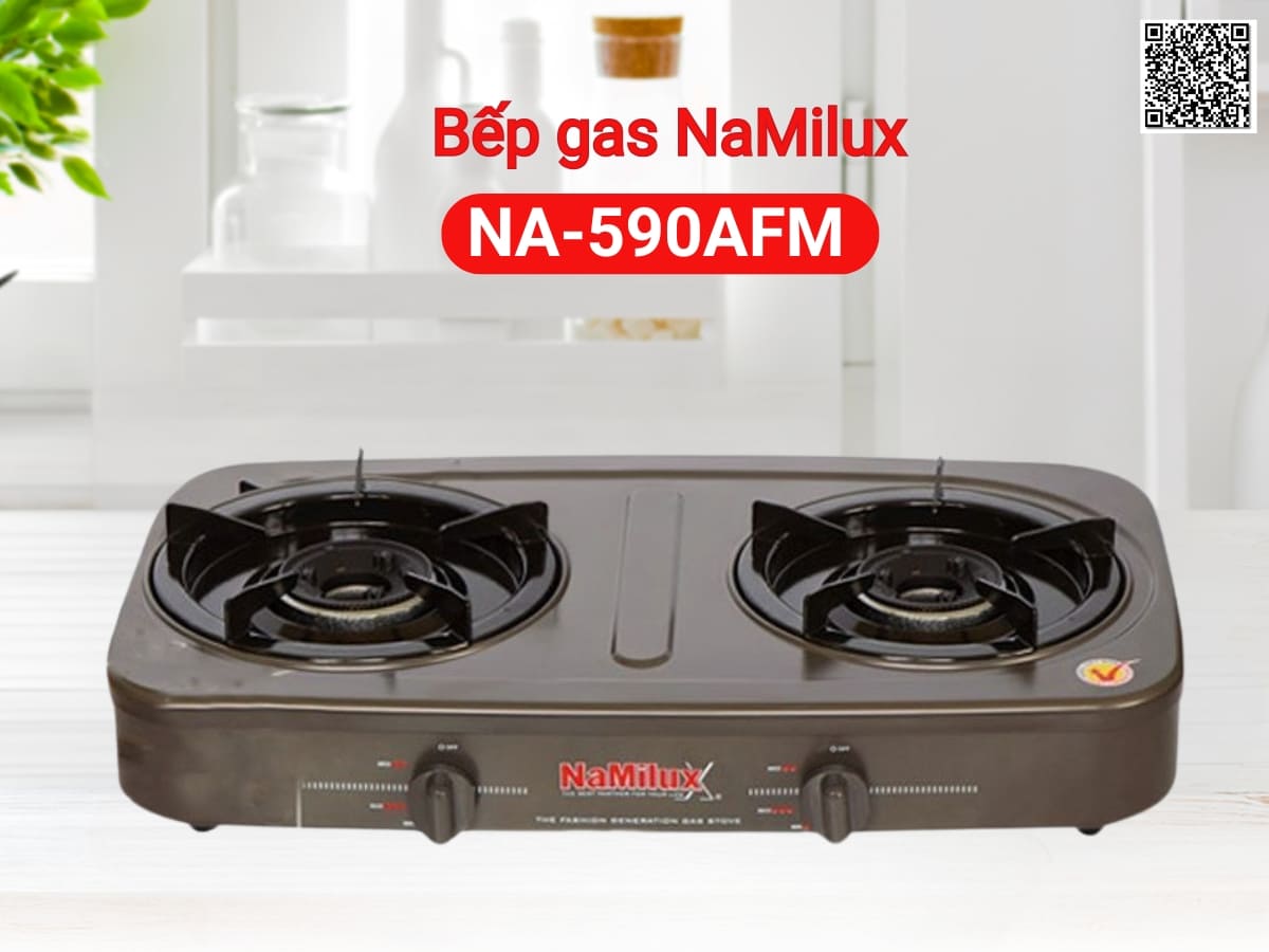 Bếp gas NaMilux NA-590AFM thiết kế bếp dương với kiểu dáng truyền thống, cứng cáp. Mặt bếp bằng inox bền bỉ, chống hoen gỉ, rất khó bám bẩn và dễ dàng vệ sinh. Thiết kế 2 lò nấu đáp ứng tốt nhu cầu nấu nướng hàng ngày của gia đình. Bộ ống điếu đầu đốt cho hiệu suất đốt cao, tạo ngọn lửa xanh. Đặc biệt là ống điếu Alcoat bằng hợp kim chịu nhiệt theo tiêu chuẩn Nhật Bản, giúp tiết kiệm 10% gas hiệu quả.