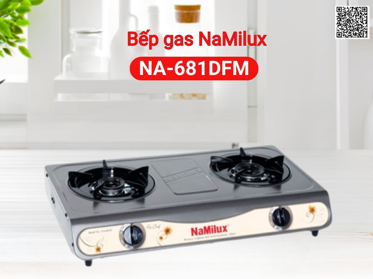 Bếp gas NaMilux NA-681DFM thiết kế bếp dương với kiểu dáng truyền thống, cứng cáp. Mặt bếp bằng inox bền bỉ, chống hoen gỉ, rất khó bám bẩn và dễ dàng vệ sinh. Thiết kế 2 lò nấu đáp ứng tốt nhu cầu nấu nướng hàng ngày của gia đình. Bộ ống điếu đầu đốt cho hiệu suất đốt cao, tạo ngọn lửa xanh. Ống điếu bằng inox chịu nhiệt tốt, chống biến dạng khi nấu ở nhiệt độ cao và cho tốc độ bắt lửa nhanh.