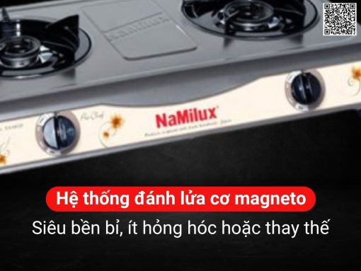 Bếp gas NaMilux NA-681DFM trang bị hệ thống đánh lửa cơ học Magneto, đảm bảo lửa nhạy cháy, ổn định và độ bền cao. Bạn chỉ cần ấn và xoay vặn nhẹ núm để bật bếp, điều chỉnh ngọn lửa to nhỏ dễ dàng. Núm vặn làm bằng nhựa ABS nguyên sinh được bố trí mặt trước của bếp, giúp dễ dàng điều chỉnh nhiệt độ trong lúc nấu, đáp ứng mọi nhu cầu nấu ăn của gia đình.