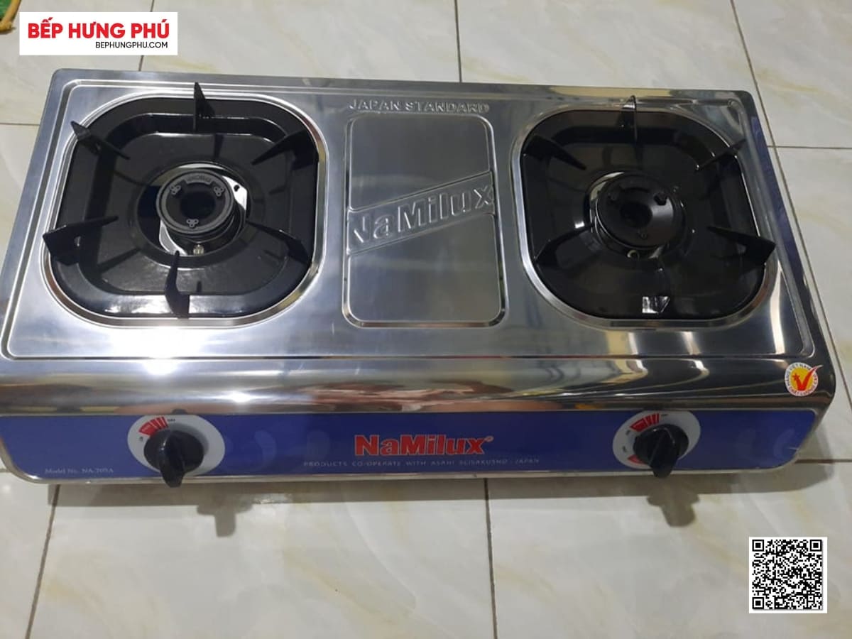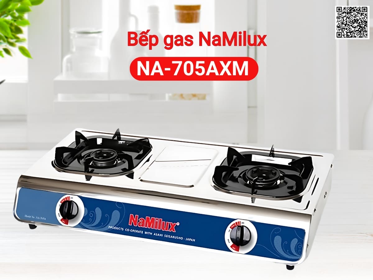 Bếp gas NaMilux NA-705AXM thiết kế bếp dương với kiểu dáng truyền thống, cứng cáp. Mặt bếp bằng inox bền bỉ, chống hoen gỉ, rất khó bám bẩn và dễ dàng vệ sinh. Thiết kế 2 lò nấu đáp ứng tốt nhu cầu nấu nướng hàng ngày của gia đình. Bộ ống điếu đầu đốt bằng hợp kim nhôm cho hiệu suất đốt cao, tạo ngọn lửa xanh. Ống điếu bằng inox chịu nhiệt tốt, chống biến dạng khi nấu ở nhiệt độ cao và cho tốc độ bắt lửa nhanh.