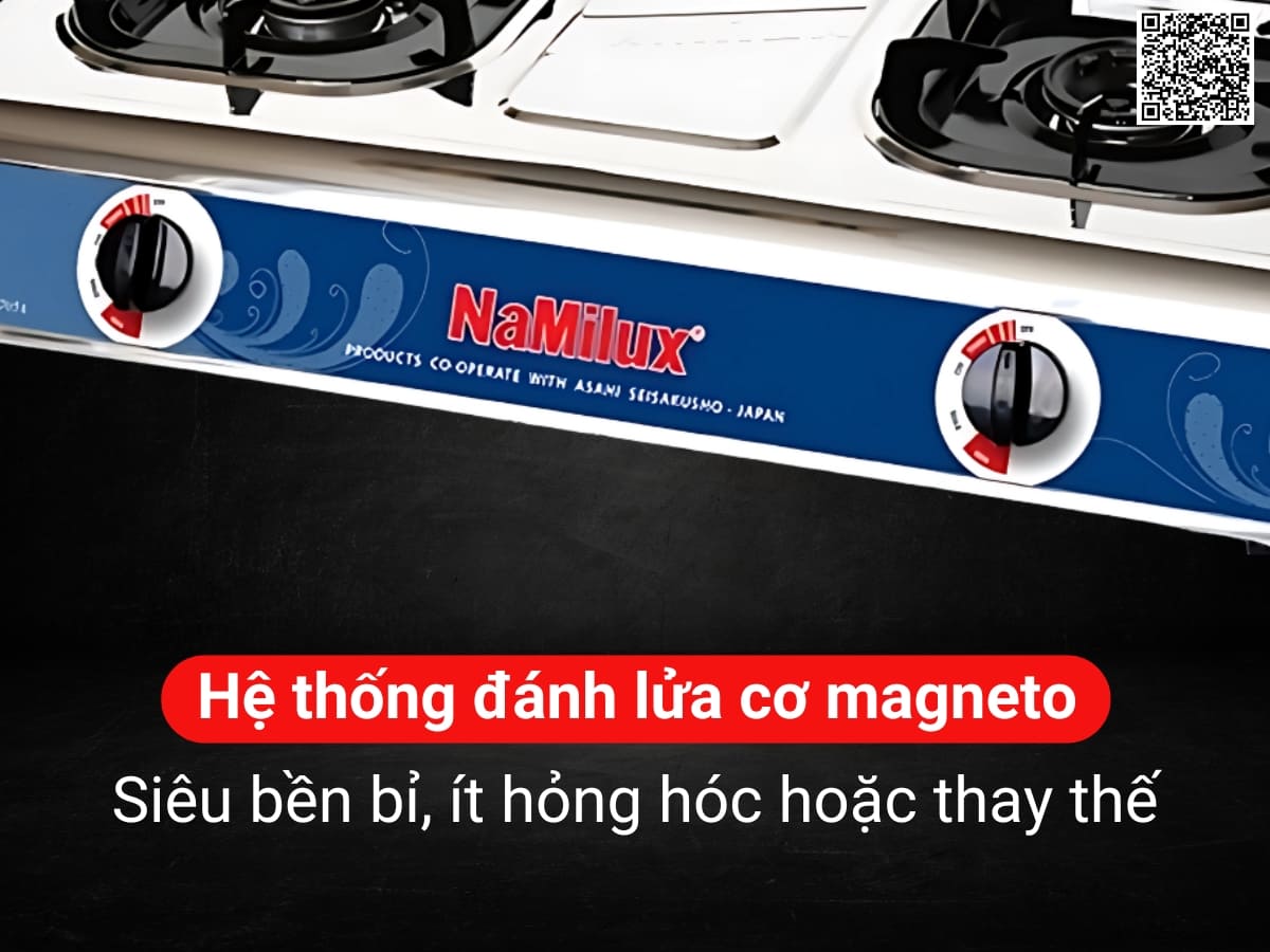 Bếp gas NaMilux NA-705AXM trang bị hệ thống đánh lửa cơ học Magneto, đảm bảo lửa nhạy cháy, ổn định và độ bền cao. Bạn chỉ cần ấn và xoay vặn nhẹ núm để bật bếp, điều chỉnh ngọn lửa to nhỏ dễ dàng. Núm vặn làm bằng nhựa ABS nguyên sinh được bố trí mặt trước của bếp, giúp dễ dàng điều chỉnh nhiệt độ trong lúc nấu, đáp ứng mọi nhu cầu nấu ăn của gia đình.