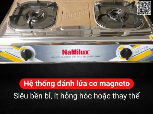 Bếp gas NaMilux NA-711ASM trang bị hệ thống đánh lửa cơ học Magneto, đảm bảo lửa nhạy cháy, ổn định và độ bền cao. Bạn chỉ cần ấn và xoay vặn nhẹ núm để bật bếp, điều chỉnh ngọn lửa to nhỏ dễ dàng. Núm vặn làm bằng nhựa ABS nguyên sinh được bố trí mặt trước của bếp, giúp dễ dàng điều chỉnh nhiệt độ trong lúc nấu, đáp ứng mọi nhu cầu nấu ăn của gia đình.