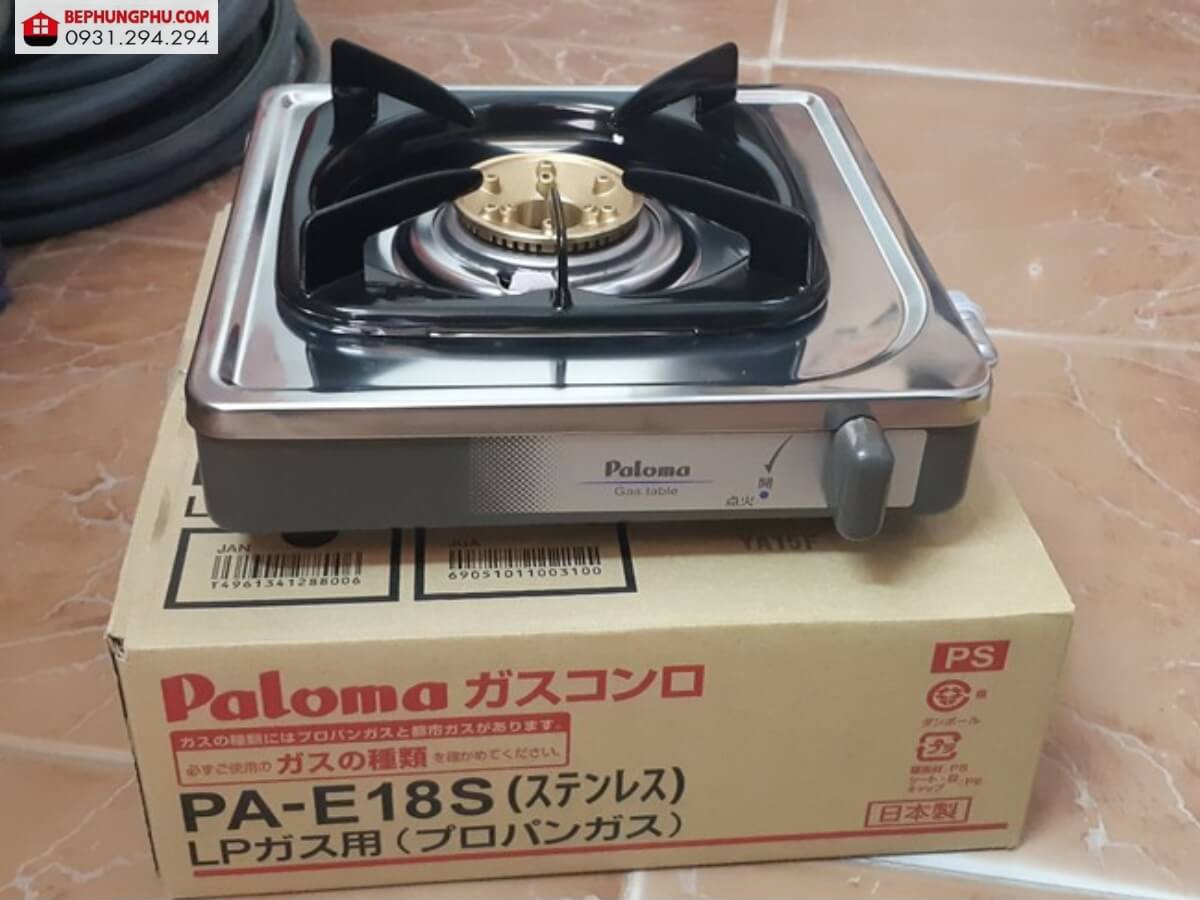 Bếp gas Paloma PA-E18S thiết kế bếp đơn nhỏ gọn, tiện lợi sử dụng, mặt bếp inox sáng bóng, dễ dàng lau chùi, vệ sinh. Đặc biệt là đầu đốt đồng thau bền bỉ, tạo ngọn lửa xanh đun nấu hiệu quả và không làm đen đáy nồi. Bếp được sản xuất và nhập khẩu trực tiếp từ Nhật, đảm bảo chất lượng và độ bền bỉ đáng tin cậy.