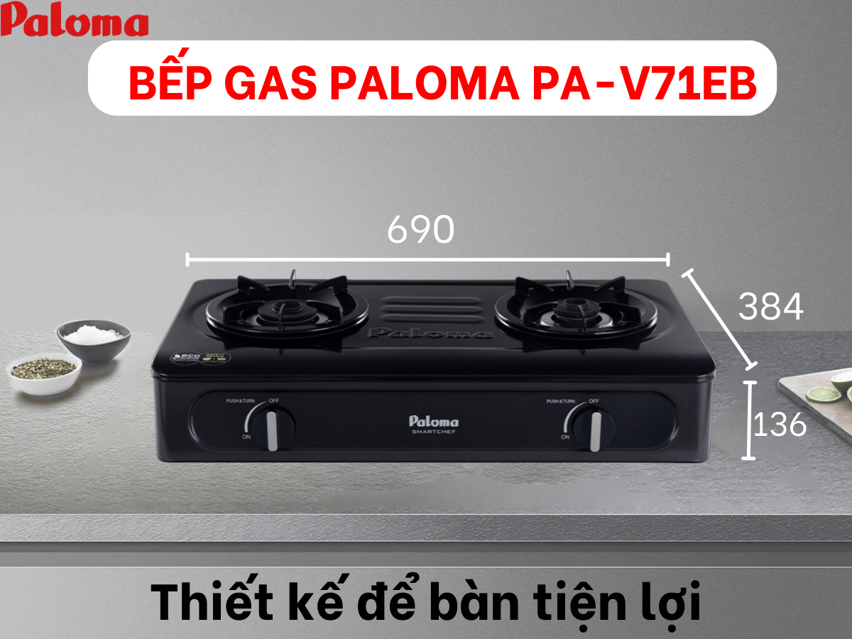 Bếp gas Paloma PA-V71EB thiết kế hiện đại, để bàn tiện lợi