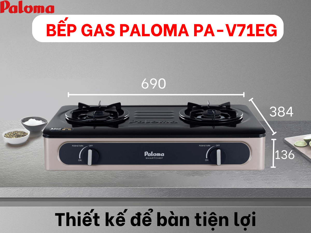 Bếp gas Paloma PA-V71EG thiết kế hiện đại, để bàn tiện lợi