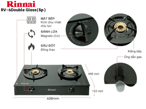 Bếp gas Rinnai RV-6Double Glass(Sp) thiết kế để bàn tiện lợi