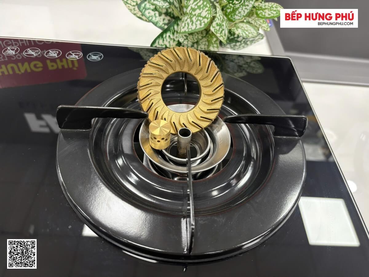Bếp gas rinnai RV-6Double Glass sử dụng đầu đốt bằng đồng thau bền chắc, không bị ảnh hưởng bởi nhiệt độ cao khi nấu nướng. Đặc biệt, thiết kế đầu đốt với các rãnh xoáy tạo hình ngọn lửa xoắn, tập trung vào vị trí trung tâm, nhiệt lượng được khuếch tán cực đại, giúp nấu chín thực phẩm nhanh chóng với lượng tiêu thụ gas rất tiết kiệm.