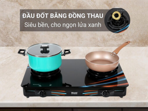 Bếp gas Rinnai RV-715Slim(GL-SC) có 2 đầu đốt được làm bằng đồng thau siêu bền, cho ngọn lửa xanh không gây đen đáy nồi và còn rất tiết kiệm gas.