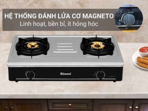 Bếp gas Rinnai RV-B274S thiết kế bếp dương 70cm với mặt bếp inox sáng bóng, bền chắc. 2 lò nấu đáp ứng tốt nhu cầu nấu nướng hàng ngày của gia đình. Đầu đốt đồng thau bền bỉ, tạo ngọn lửa xanh không đen đáy nồi. Ngoài ra còn tích hợp 1 đầu hâm dễ dàng hâm, hầm, ninh… Hệ thống đánh lửa cơ Magneto bền bỉ. Kiềng bếp chất liệu thép phủ men đen chịu nhiệt, chịu lực, chắc chắn và chống trơn trượt.