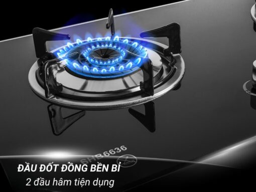 Bếp gas Sunhouse SHB-6636 được trang bị 2 đầu đốt bằng đồng cao cấp, bền bỉ, chịu nhiệt tốt, hạn chế ăn mòn và biến dạng sau thời gian dài sử dụng. Đầu đốt đồng tạo ngọn lửa xanh cháy đều, giúp đun nấu hiệu quả, tiết kiệm gas và không làm đen đáy nồi.