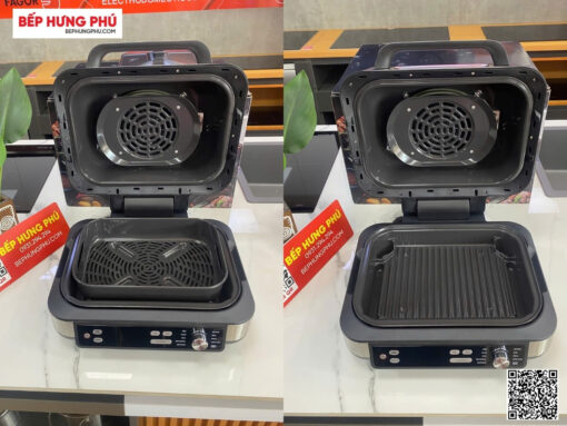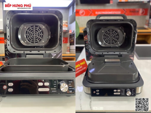 Bếp nướng đa năng Megapot công suất 1700W giúp chiên nướng nhanh chóng, dải nhiệt rộng 60 – 250°C phù hợp với nhiều thực phẩm khác nhau. Có 10 chế độ đa dụng: nướng, chiên không dầu, hấp, sấy khô, làm bánh… giúp bạn dễ dàng chế biến được nhiều món ngon cho gia đình. Khay nướng bằng nhôm đúc phủ men chống dính an toàn, dễ vệ sinh, chùi rửa. Hệ thống điều khiển nút xoay & nút nhấn dễ sử dụng.