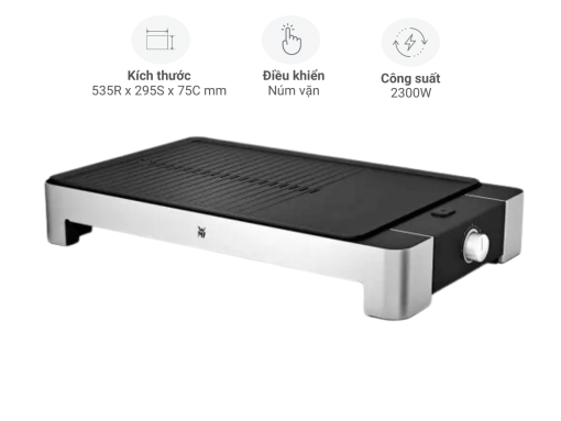 – Bếp nướng WMF Lono TGrill Flat&Ribbed 0415340011 có công suất mạnh mẽ 2300W giúp nướng nhanh chóng, tiết kiệm thời gian.