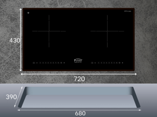 Kích thước mặt bếp là 720 x 430 x 100mm và kích thước khoét đá là 680 x 390 mm cùng gam màu đen tinh tế, các hộ gia đình có thể đặt bếp tại bất kỳ vị trí nào.