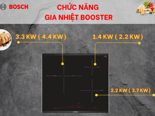 Chức năng gia nhiệt nhanh PowerBoost được tích hợp trên mỗi vùng nấu, khi kích hoạt thì có thể đẩy công suất vùng nấu lên đến 50% so với mức công suất tối đa thông thường. Vùng nấu được gia nhiệt một cách nhanh chóng, giúp đẩy nhanh tiến độ nấu nướng, tiết kiệm được nhiều thời gian cho người nội trợ. Tính năng này đặc biệt hữu ích khi cần nấu nhanh, gấp hay nấu các món đòi hỏi mức nhiệt cao trong thời gian ngắn.