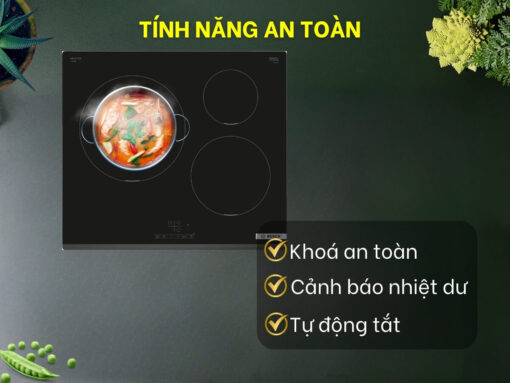 Tính năng khóa an toàn trẻ em sẽ làm khóa bảng điều khiển của bếp khi đang nấu, để ngăn không cho trẻ tự ý điều khiển bếp làm ảnh hưởng đến quá trình nấu cũng như mất an toàn cho trẻ.