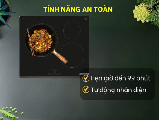 Bếp được thiết kế với 3 vùng nấu tổng công suất 7,4kW, cho phép nấu nướng cùng lúc 3 món với khả năng đun nấu nhanh, hiệu quả và tiết kiệm thời gian, đem đến sự tiện lợi tối đa cho người dùng.