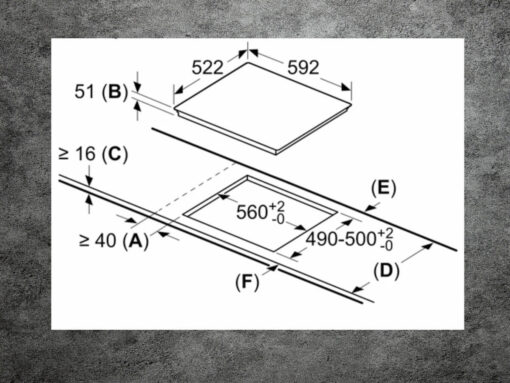 - Kích thước lắp đặt: 560R x 490-500S mm