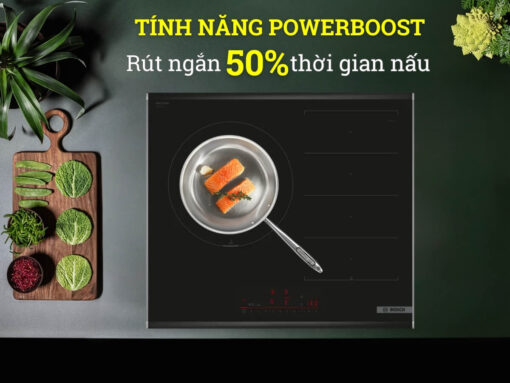 Chức năng gia nhiệt nhanh PowerBoost trên Bếp từ Bosch PXJ675HC1E được tích hợp trên cả 3 vùng nấu, khi kích hoạt cho 1 trong 3 vùng nấu thì có thể đẩy công suất vùng nấu lên đến 50% so với mức công suất tối đa thông thường. Vùng nấu được gia nhiệt một cách nhanh chóng, giúp đẩy nhanh tiến độ nấu nướng, tiết kiệm được nhiều thời gian cho người nội trợ. Tính năng này đặc biệt hữu ích khi cần nấu nhanh, gấp hay nấu các món đòi hỏi mức nhiệt cao trong thời gian ngắn.