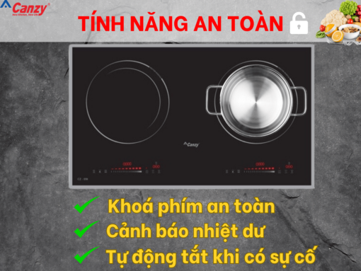 Bếp từ Canzy CZ 09I có hệ thống cảm biến hiện đại dưới mỗi vùng nấu, có thể phát hiện các sự cố như có nước hoặc thức ăn tràn xuống bảng điều khiển, nồi bị cháy hoặc bị cạn nước, hay bếp bị quá nhiệt, quá áp, hoặc không có nồi đặt trên bếp. Trong những trường hợp này, bếp sẽ tự động ngắt công suất để đảm bảo an toàn cho bếp, an toàn của người dùng cũng như tránh lãng phí điện năng.